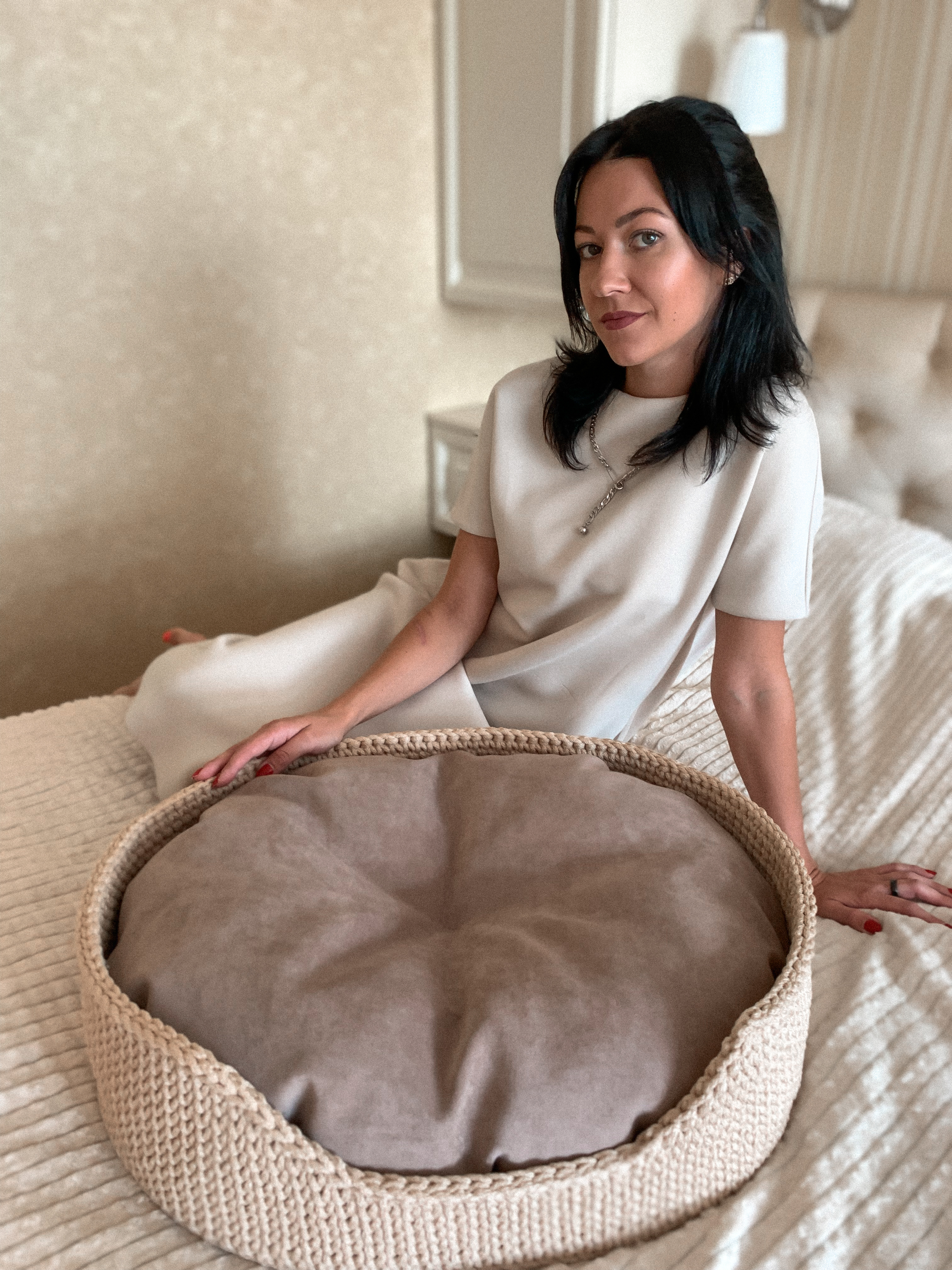 Мне всегда нравилось иметь в доме уникальные вещи, выполненные из натуральных материалов и подчеркивающие уют и порядок в доме. Так я начала экспериментировать с необычными материалами и фактурой, пробуя создать свое уникальное изделие. Я вязала и вновь распускала, очень много работала над техникой, пока не получилось идеально.