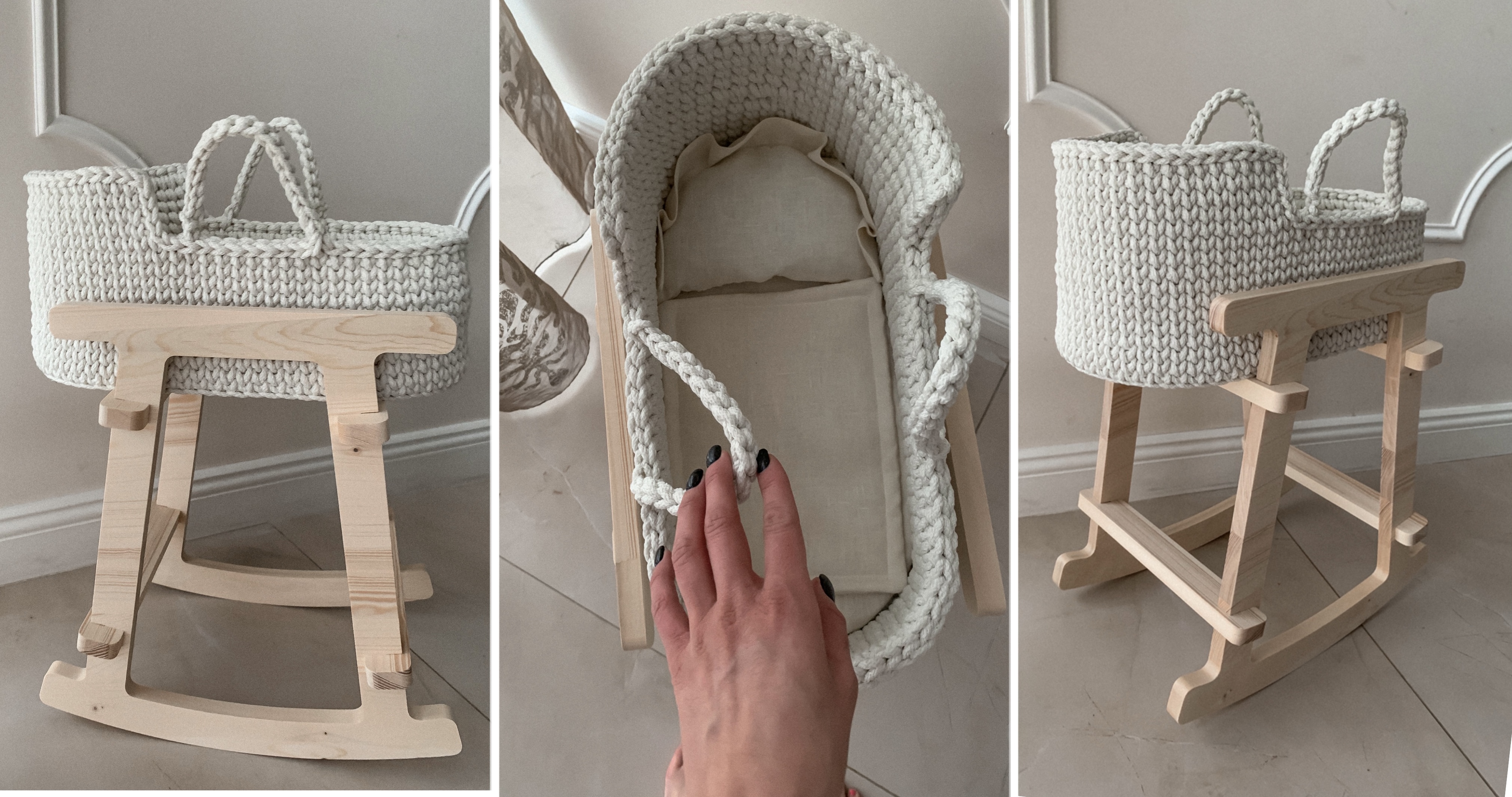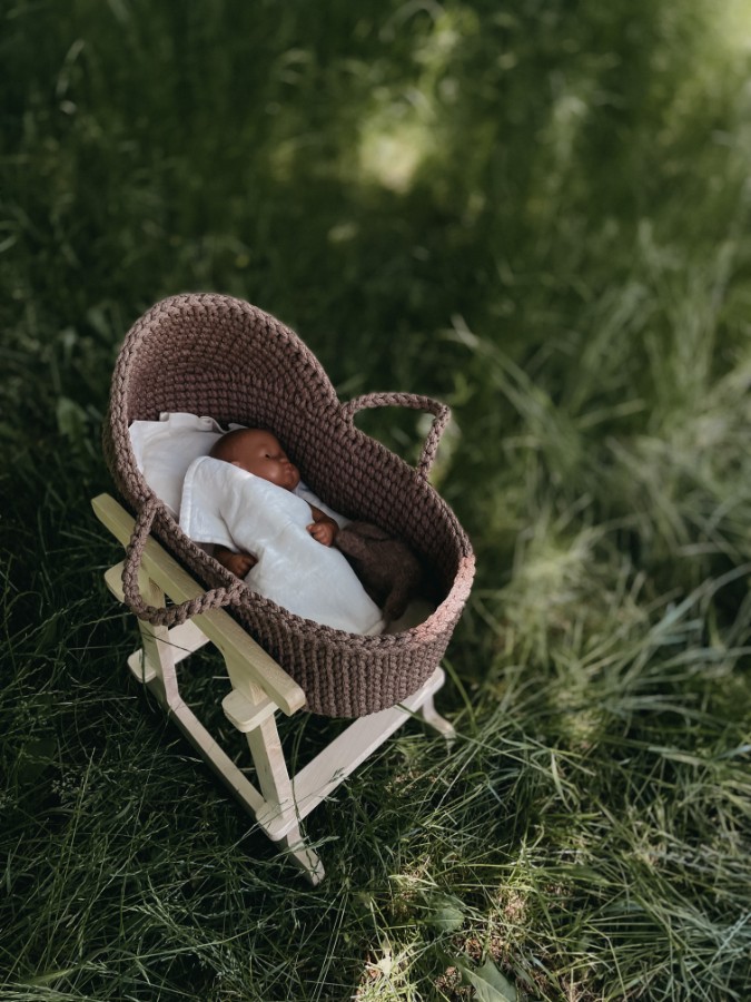 Кукольная люлька с подставкой-качалкой станет не только развивающей игрушкой на любой возраст, но и прекрасным украшением интерьера.
